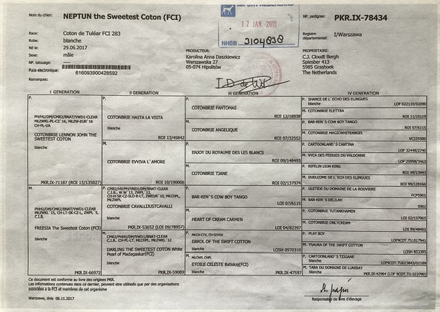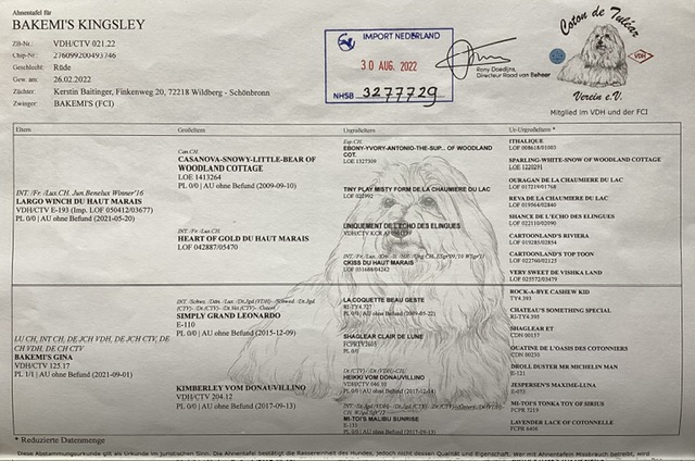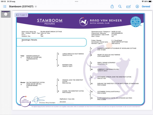 Stamboom van Raad van Beheer en DNA onderzoek van de pup !!